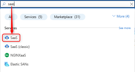 • 画面上部中央の検索バーに SaaS と入力し、検索結果から SaaS を選択します。