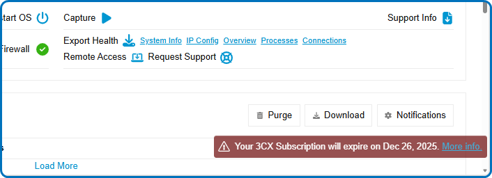 「Your 3CX Subscription will expire on ______ . More info.」