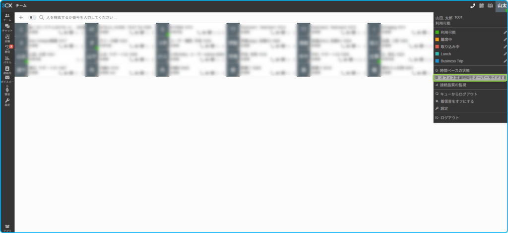 ②受付係のユーザーにてWebクラインにログインし、右上のアイコン>オフィス時間をオーバーライドする